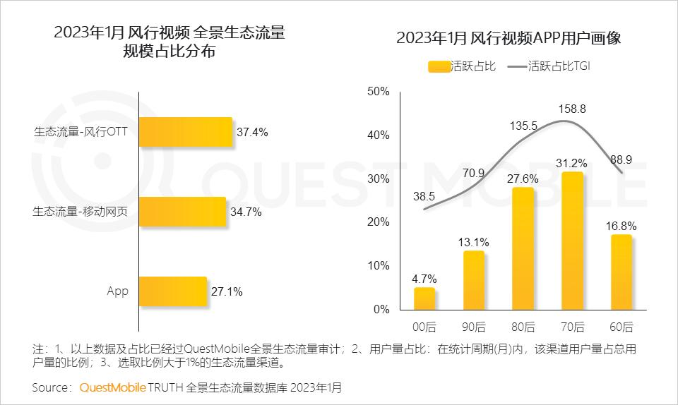 风行视频OTT端流量占比已达37.4%,APP与大屏渠道联动,更好服务家庭大屏场景主流人群。