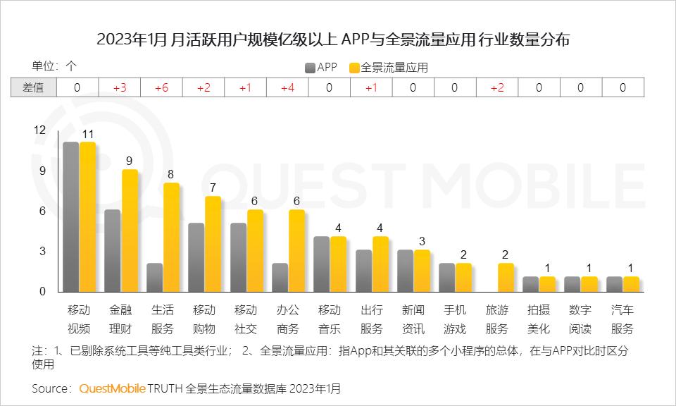 生活服务、办公商务、金融理财等行业获得更多全景流量加持,实现亿级以上月活跃用户规模应用数量的提升