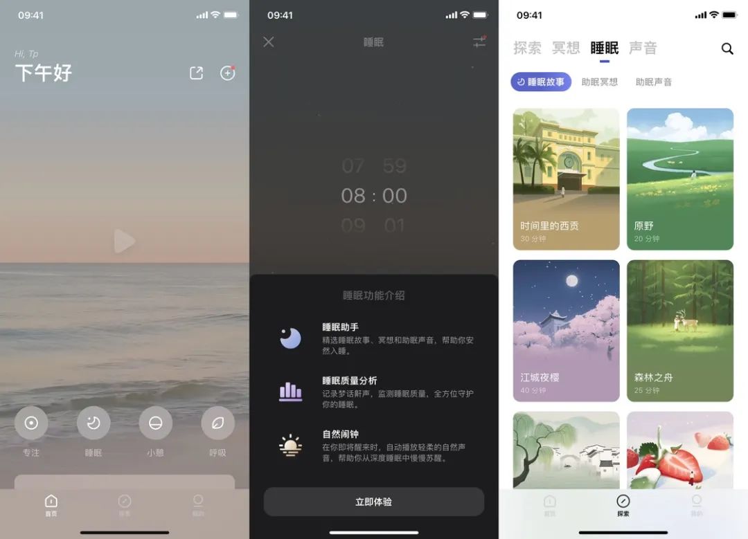 潮汐拥有非常丰富的中文内容库,从白噪音、助眠音频到冥想训练一应俱全。并且在设计上仍保持足够的简洁直观,不会因为内容多而给人一种「杂乱」的感觉。