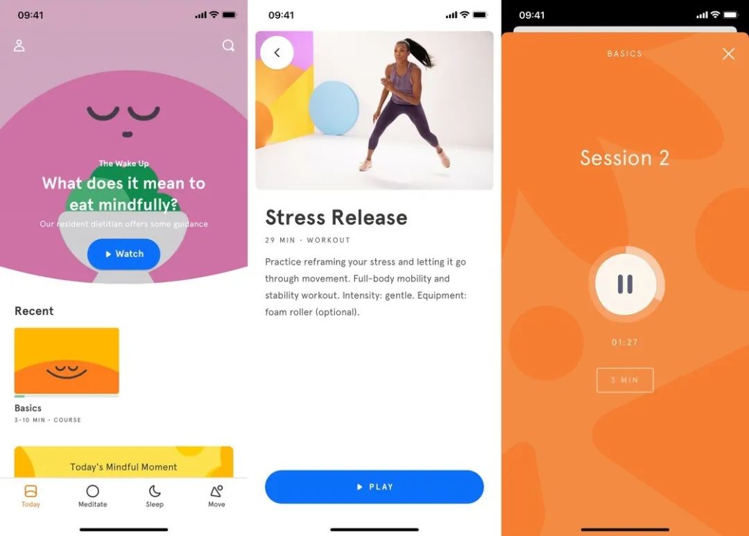 有些时候,适当的运动可以排解压力、缓和焦虑。Headspace 不仅拥有冥想和睡眠练习,它甚至还拥有简单的运动练习,这些练习都会以视频的形式来呈现,你只需要根据描述准备合适的道具(比如瑜伽垫)即可跟着 Headspace 开始做运动。