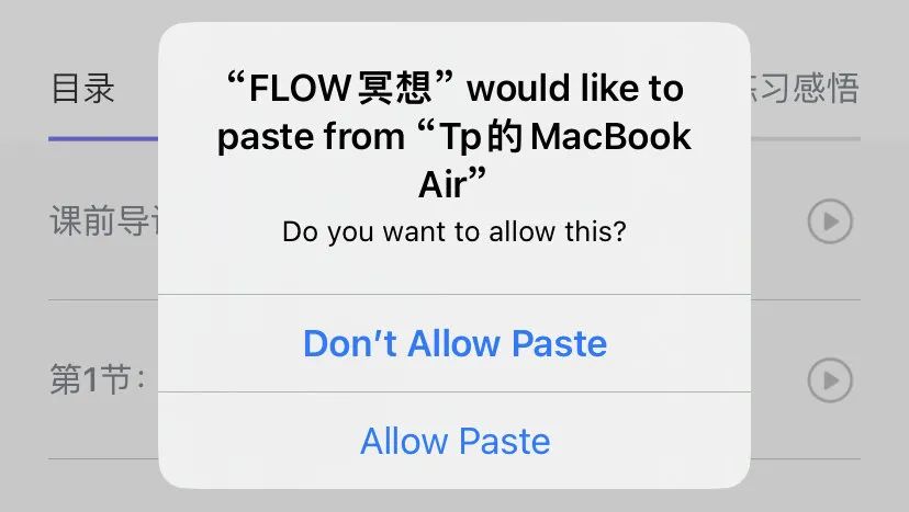 对了,FLOW 冥想在每次启动时都会尝试读取剪贴板。如果你使用的是 iOS 16,那么每次切换到 FLOW 时都会有弹窗,非常恼人。建议在设置里修改 FLOW 的剪贴板权限,也希望 FLOW 的开发团队可以通过更新解决这个问题。