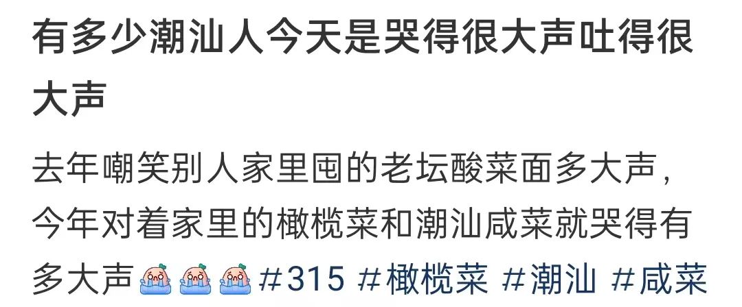 谁能想到,这届3·15第一个曝光的是橄榄菜的制作环境,一想到吃进去的橄榄菜居然如此之脏,潮汕人恨不得把早上刚吃进去的橄榄菜立即抠出来。