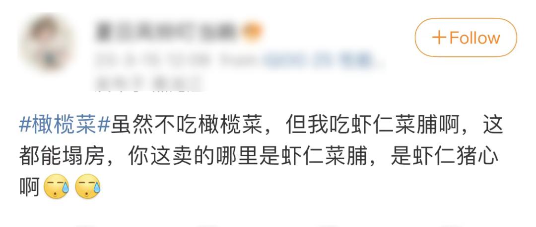 这次橄榄菜塌房,就有人同样发出对虾仁菜脯的灵魂质问。