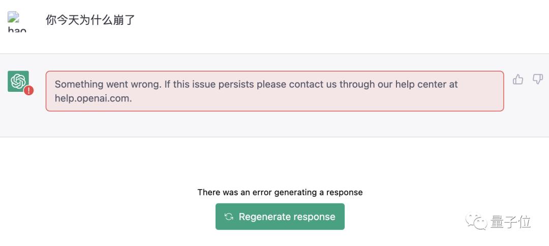 而我们试着问了一下“你今天为什么崩溃”,它居然立刻又崩了。