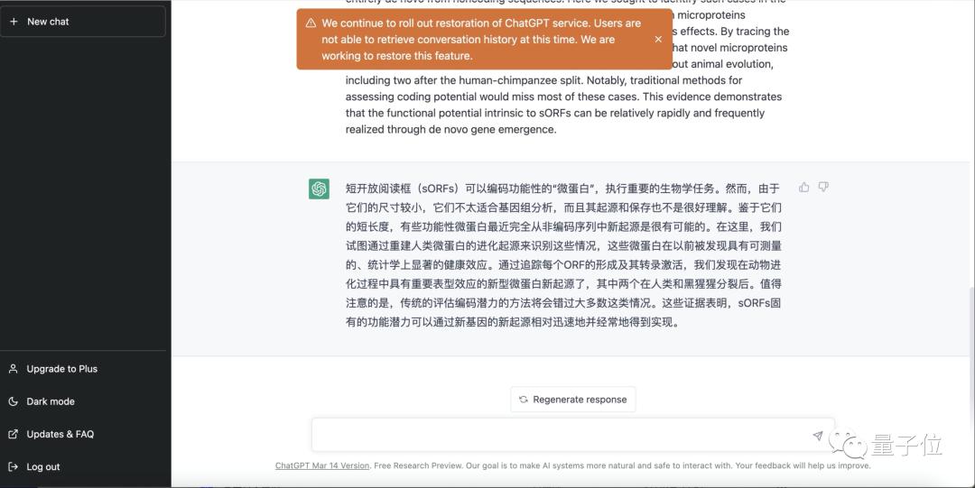 从中我们还看到,OpenAI也只是恢复了正常的Chat功能,历史聊天记录还没恢复——弄清其中的原因也花了俩小时。