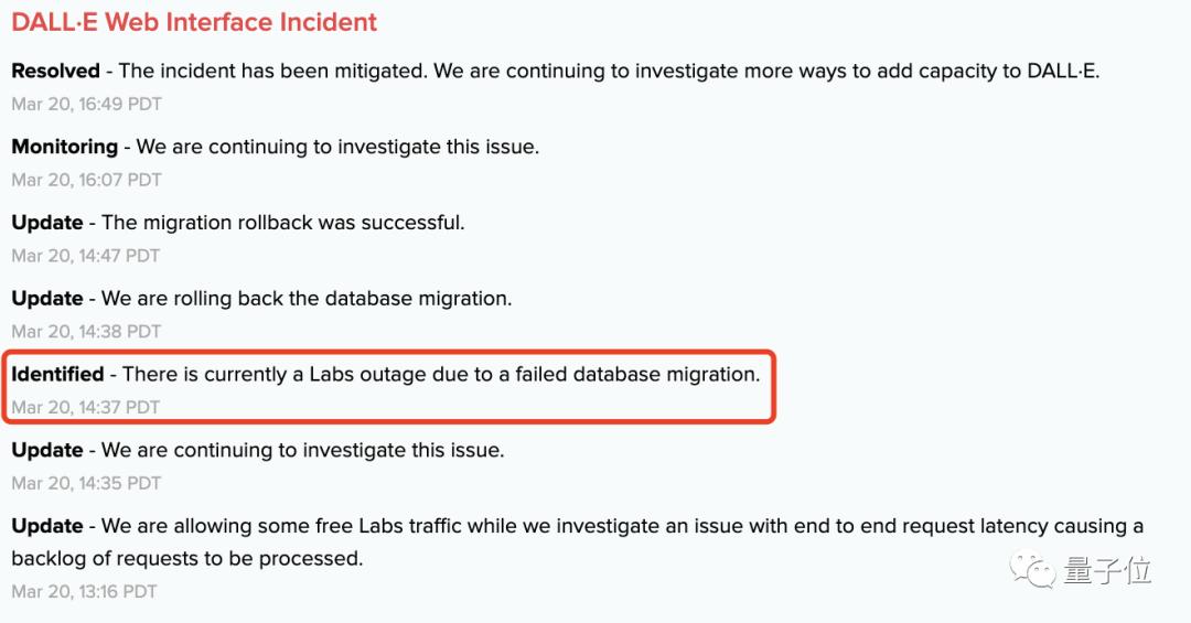 OpenAI是在今天凌晨0点42分注意到这个问题,开始抢修。
