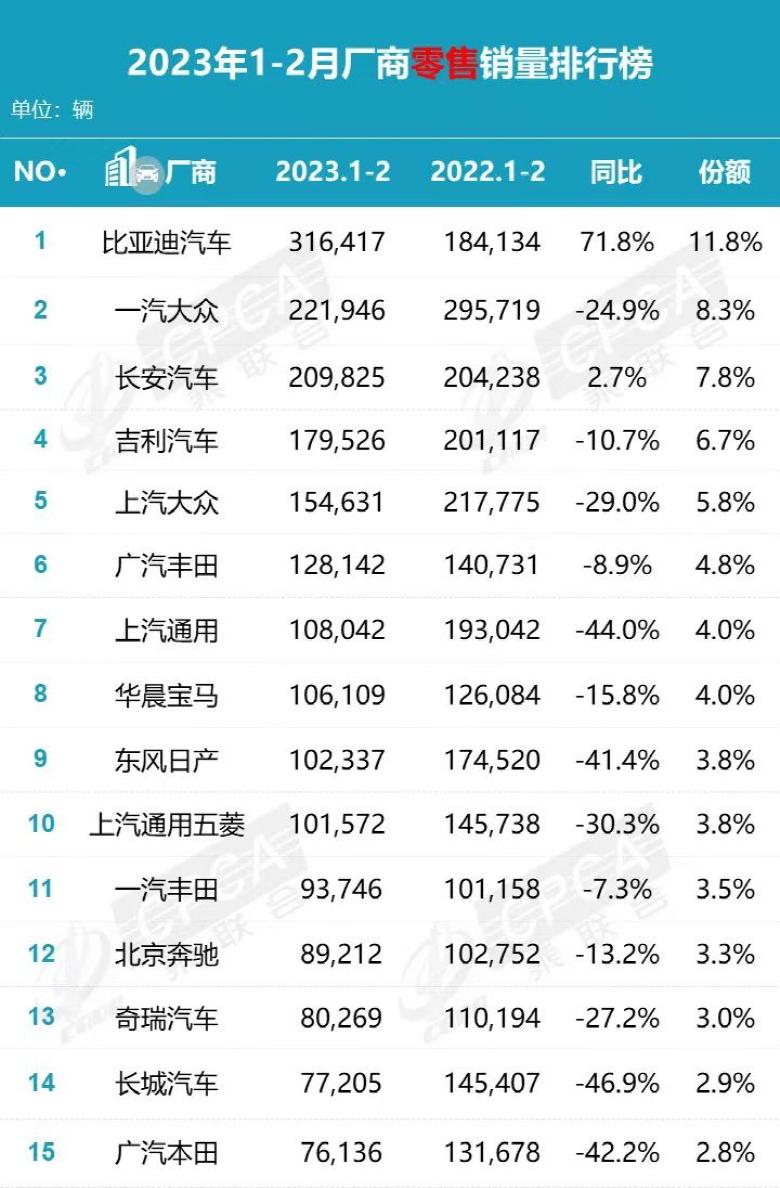 而且根据乘联会数据统计,2023年1月国内乘用车库销比2.6,其中合资品牌库销比约为2.7,包括东风本田、上汽通用、一汽大众等合资品牌库存有超过2.5个月库存。而合资品牌库存高也是带动本轮降价的直接原因之一。