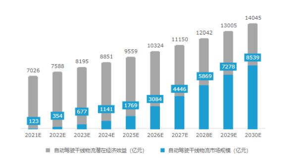 虽然按照亿欧智库的数据预测,2030年中国干线物流重卡保有量将达627万辆,自动驾驶干线物流潜在经济效益将达14045 亿元。但下游对无人驾驶货车的相对谨慎,也让这个市场空间真正扩容有限。