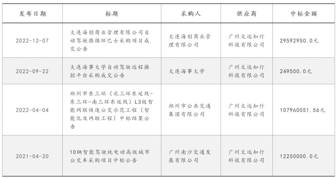 但据天眼查显示,在过去的三年时间里,虽然文远知行也拿下一些企事业单位的标的,但若是从金额和数量来看,其和蘑菇智行、百度等企业仍有较大差距。