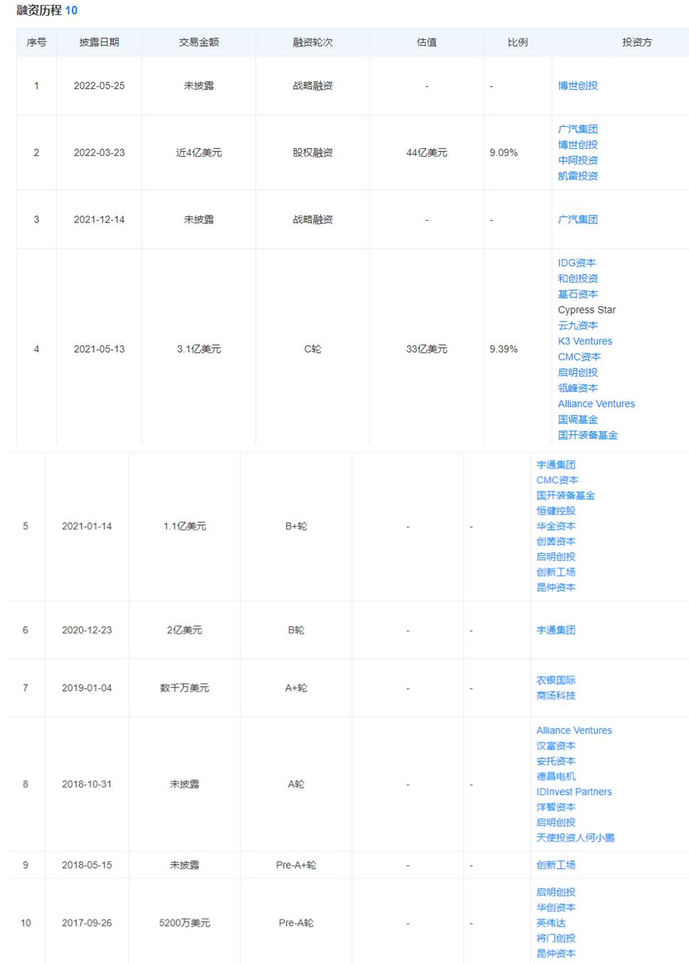 需要指出的是,虽然据天眼查显示,从文远知行成立至今,已完成10轮融资,可谓说是VC眼中的“明星企业”。但深追下来就不难发现,文远知行的对外融资具有很强的行业性。比如说,在2021年资本对自动驾驶比较看好时,其融资次数和跟投机构极多。但反之,当VC对自动驾驶不看好时,其融资自然也会受到冲击。