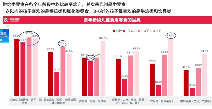 - 1岁以内儿童,82.6%会食用烘焙类(如磨牙棒、饼干、泡芙)和膨化类(如溶豆、米饼等);