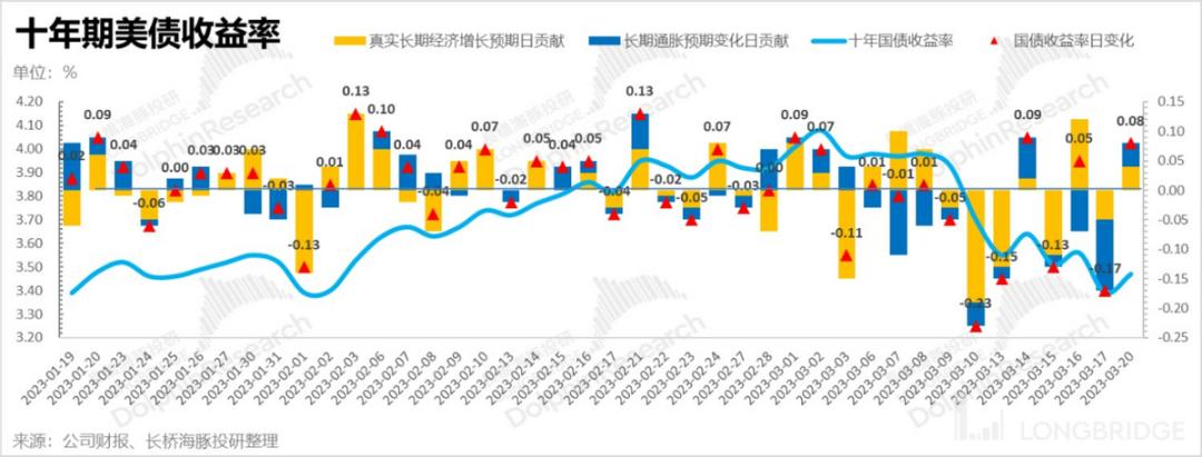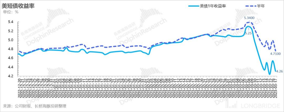 而海豚君认为,如无进一步银行业问题闪崩暴雷问题,考虑到美国经济面仍然稳健,短期内后续进一步下行的空间有限,反而会转而上行,可以看到本周第一个交易日已开始上行。