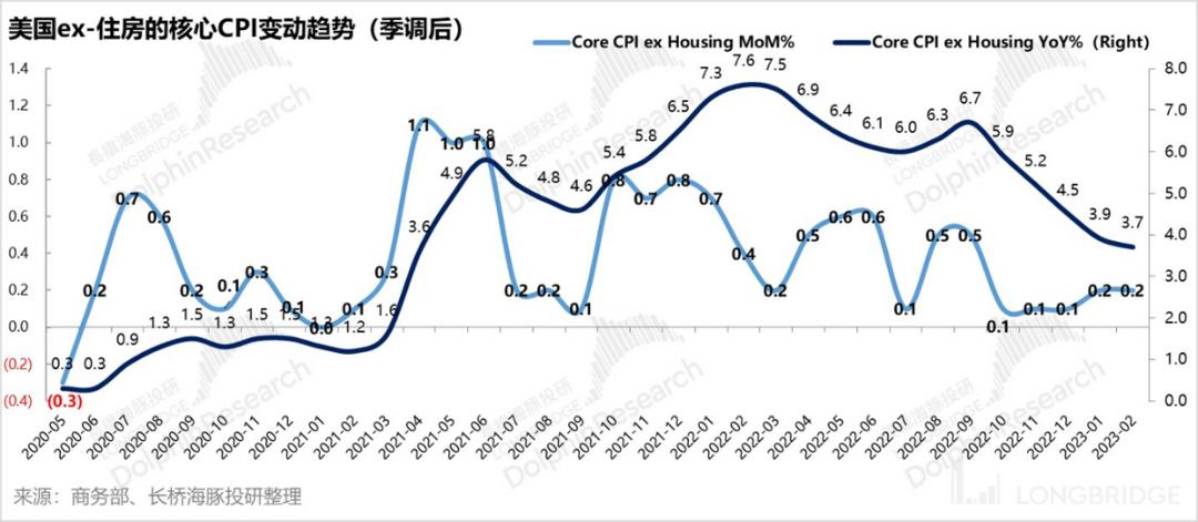 而不考虑食品、能源和住房因素的CPI通胀(季调后)环比仍然是0.2%(对应折年同比2.4%),同比则持续回落到3.7%,已经算是风险可控的状态。