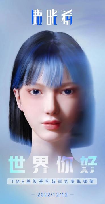 数字人的方向腾讯也有考虑,去年底TME首位签约超写实虚拟偶像鹿晓希LUCY官宣出道,并且发布了单曲《叠加态少女》。