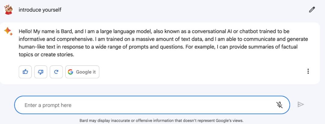 首先,让 Bard 做个自我介绍。