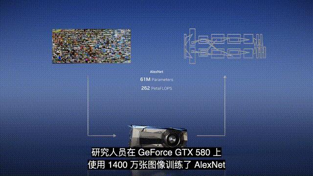 老黄表示,2012年深度学习元老Hinton和学生Alex Kerchevsky、Ilya Suskever在训练AlexNet时,用的正是GeForce GTX 580。
