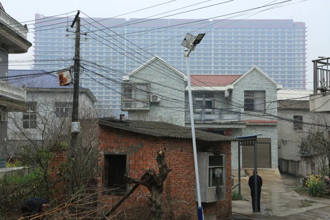 从附近的村落看养猪大楼,的确是小镇上最魔幻的一角。 图/阿灿 摄