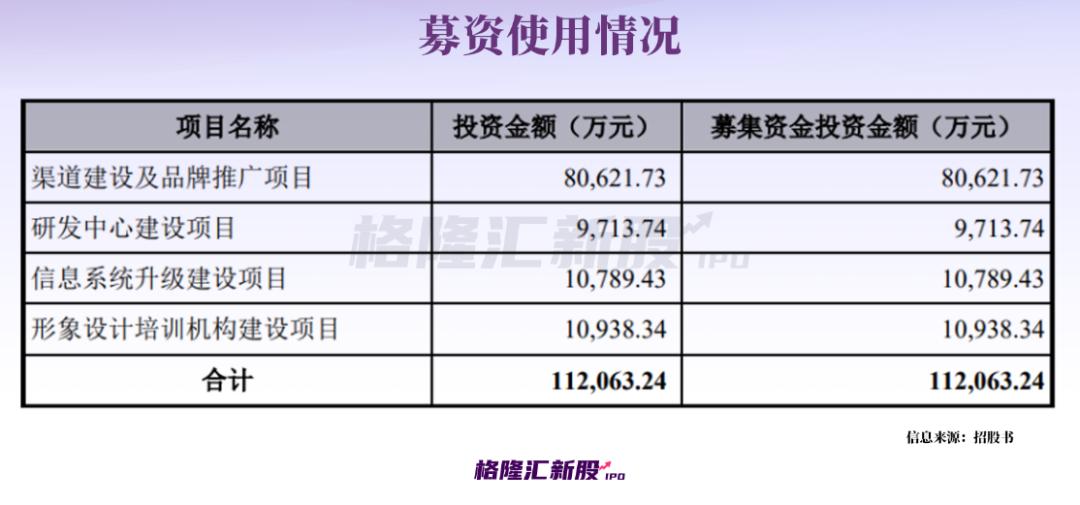 本次IPO拟募资11.21亿元,主要用于渠道建设及品牌推广项目、研发中心建设项目、信息系统升级建设项目以及形象设计培训机构建设项目。
