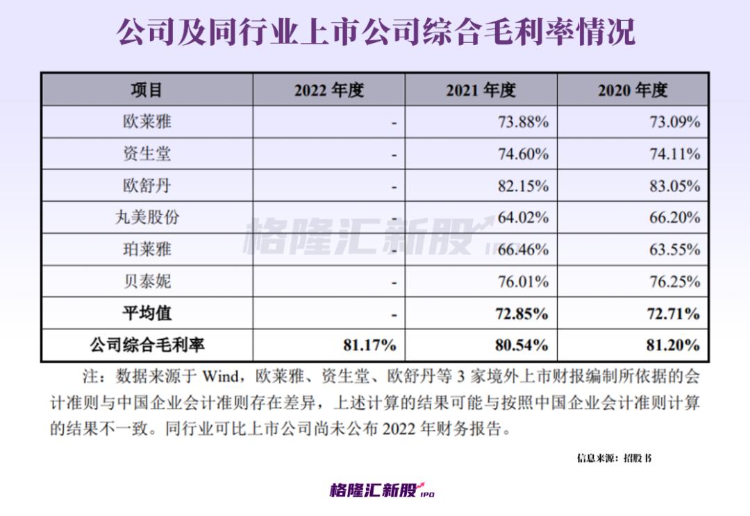 报告期内,公司的综合毛利率分别为81.20%、80.54%、81.17%,高于欧莱雅、资生堂等。显然,定位高端的MAOGEPING系列产品为其带来了高毛利。