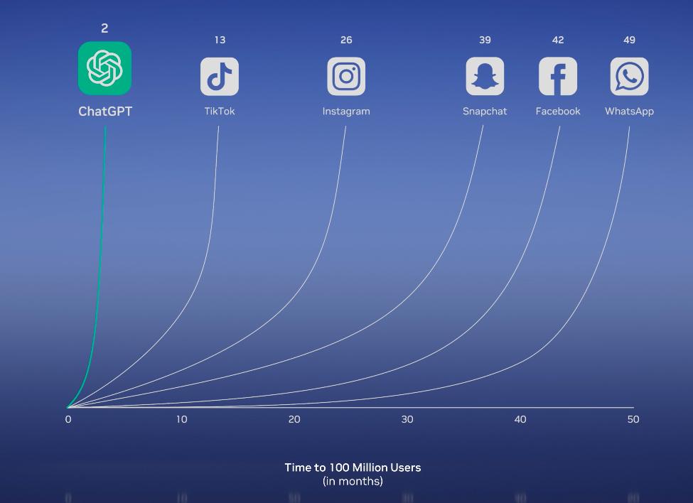 黄仁勋表示,ChatGPT、Stable Diffusion、DALL-E和Midjourney唤醒了世界对生成式AI的认知,并两次提到这是“AI的iPhone时刻”,ChatGPT也是世界上增长最快的应用程序。
