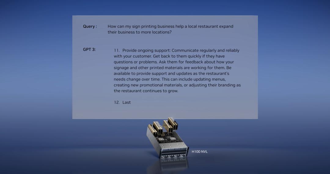 针对如ChatGPT等大模型,英伟达推出了针对大模型的芯片——H100 NVL。