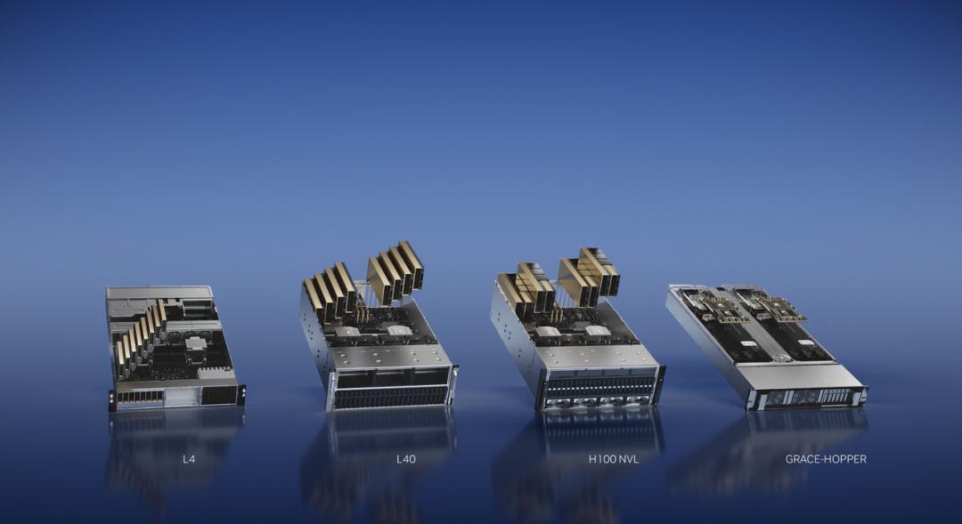 英伟达确实没有让观众失望,在不到80分钟的演讲中,黄仁勋发布了四款AI推理芯片,包括针对生成式AI图像处理、大模型处理的芯片;发布了三个大模型云服务,分别适用于文本、图像和生物研究;发布了超级计算机,以及针对场景优化的应用100个、更新功能的工业元宇宙Omniverse。