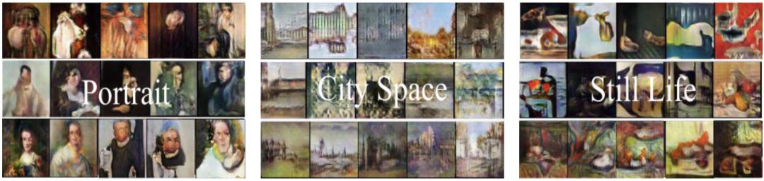 2017 年,Wei Ren Tan 等人提出了模型 “ArtGAN”,尽管其输出的图像看起来完全不像是画家的作品,但仍旧捕捉到了艺术品的低阶特征。由此,ArtGAN 激发了更多研究者使用 GAN 生成艺术图像的兴趣。