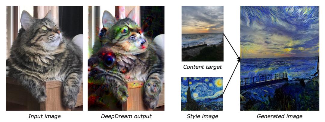 Neural Style Transfer是一种基于深度学习的技术,能够将一张图像的内容与另一图像的风格相结合,如上图(右),将梵高的《星夜》应用于目标图像。Neural Style Transfer 重新定义了 CNN 中的损失函数来实现——通过 CNN 的高层激活保留目标图像,以及多层激活来捕捉其他图像的风格。由此,输出的图像将保留输入图像的风格与内容。