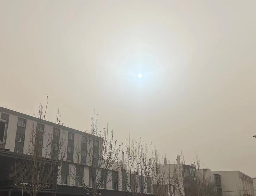 如果你在今天的沙尘中看看太阳,你可能会看到火星上的景象:太阳呈现蓝色。这是因为太阳光在穿过空气中的尘埃颗粒时发生了散射,波长更长的红光被散射掉,只留下了偏蓝的光穿透大气被我们看到。