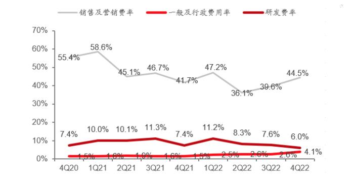 拼多多 2020 年 Q4-2022 年 Q4 分季度主要费用率 图片来源|公司公告、中泰证券研究所