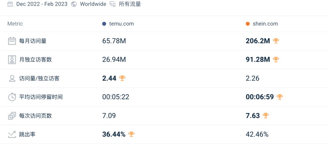近三个月内,Temu 与 SHEIN 的流量对比 数据来源|similarweb