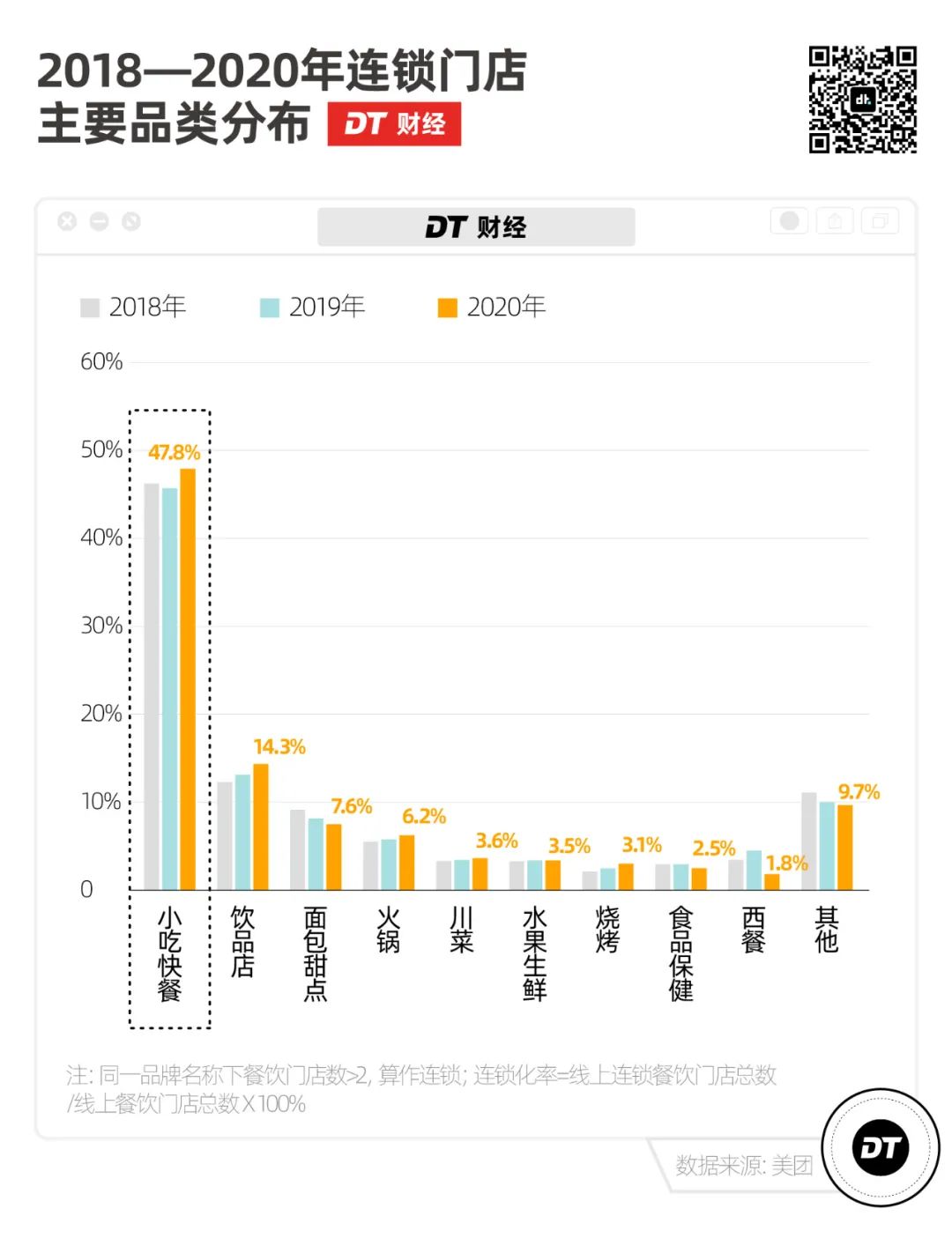美团数据显示,在快餐小吃品类上,餐饮连锁化是大势所趋。