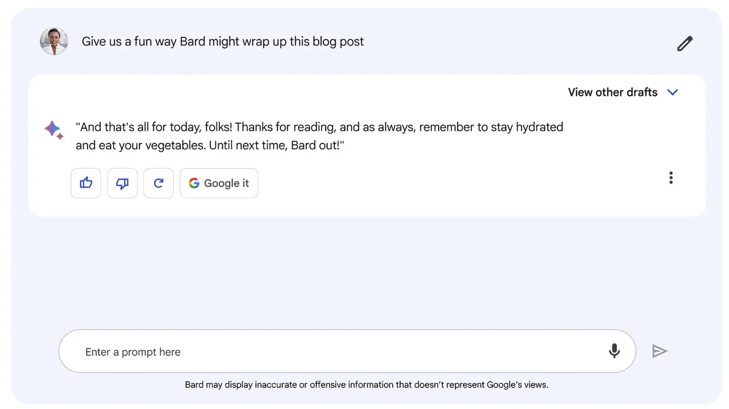 用户可以针对 Bard 提供的内容反馈其有效性与关联性。图片来源:Google