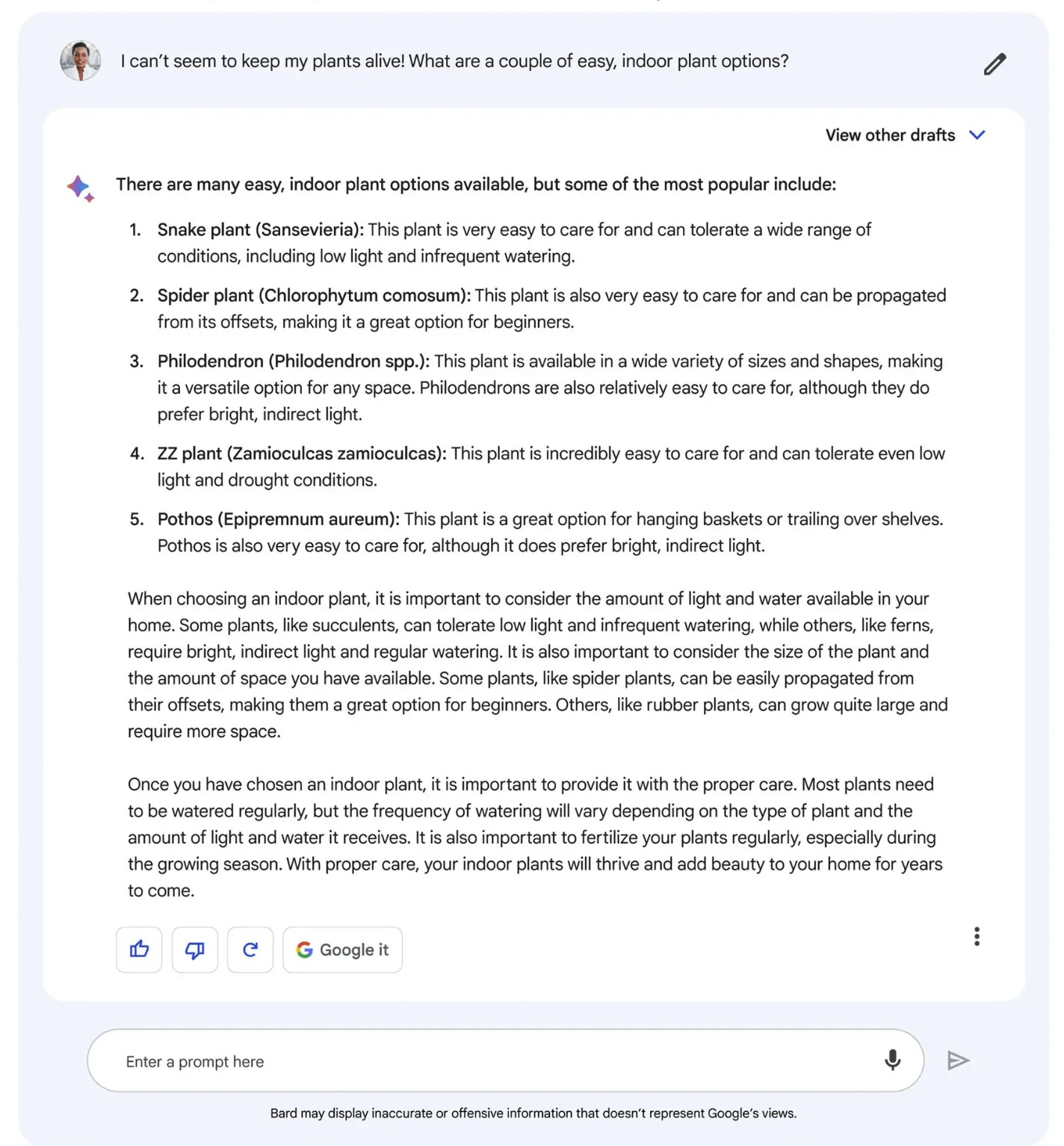 与微软的必应聊天机器人以及 You.com 和 Perplexity 等初创公司的类似人工智能聊天机器人一样,Bard 也会不时地对其回答进行注释,以便人们可以获取其来源。而且这些内容都已经在谷歌建立索引,因此它也能在第一时间获取发布到互联网上的最新信息。