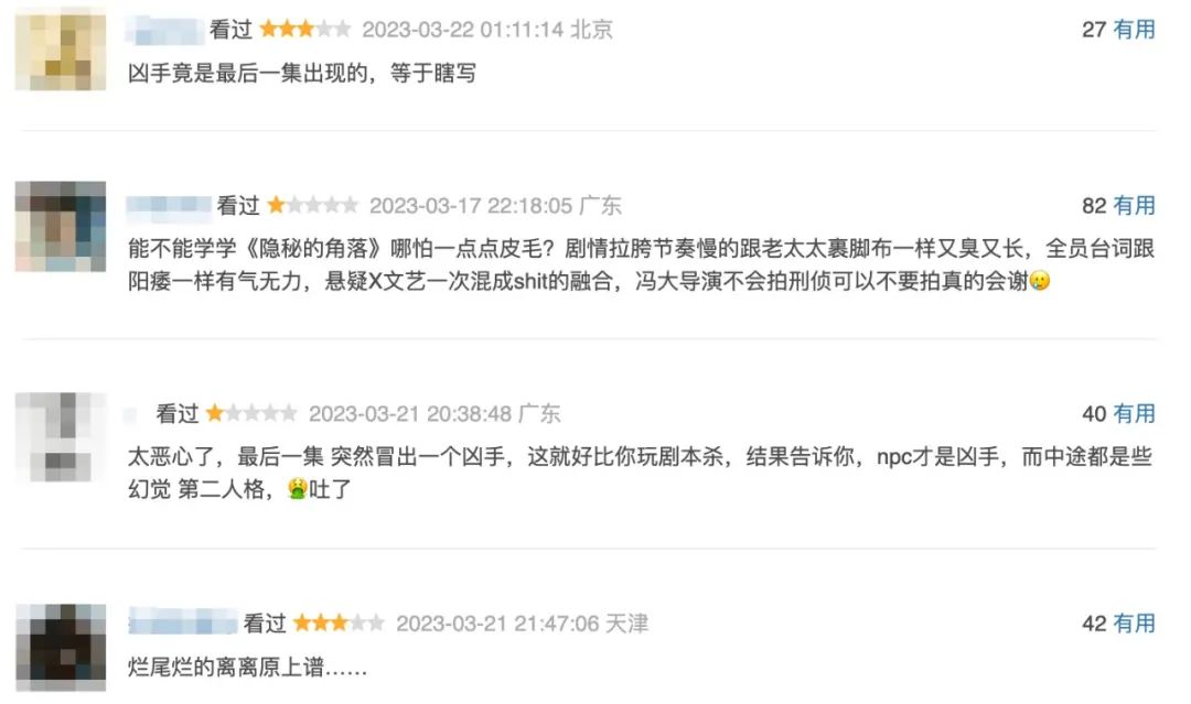 同时,《回响》中的悬疑剧情,以及悬疑戏份与情感线的平衡、融合问题,也让其受到了“非悬疑剧”等类似的批评声。