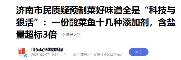 这也导致预制菜口感、口味不佳,而且还可能存在食品安全隐患。
