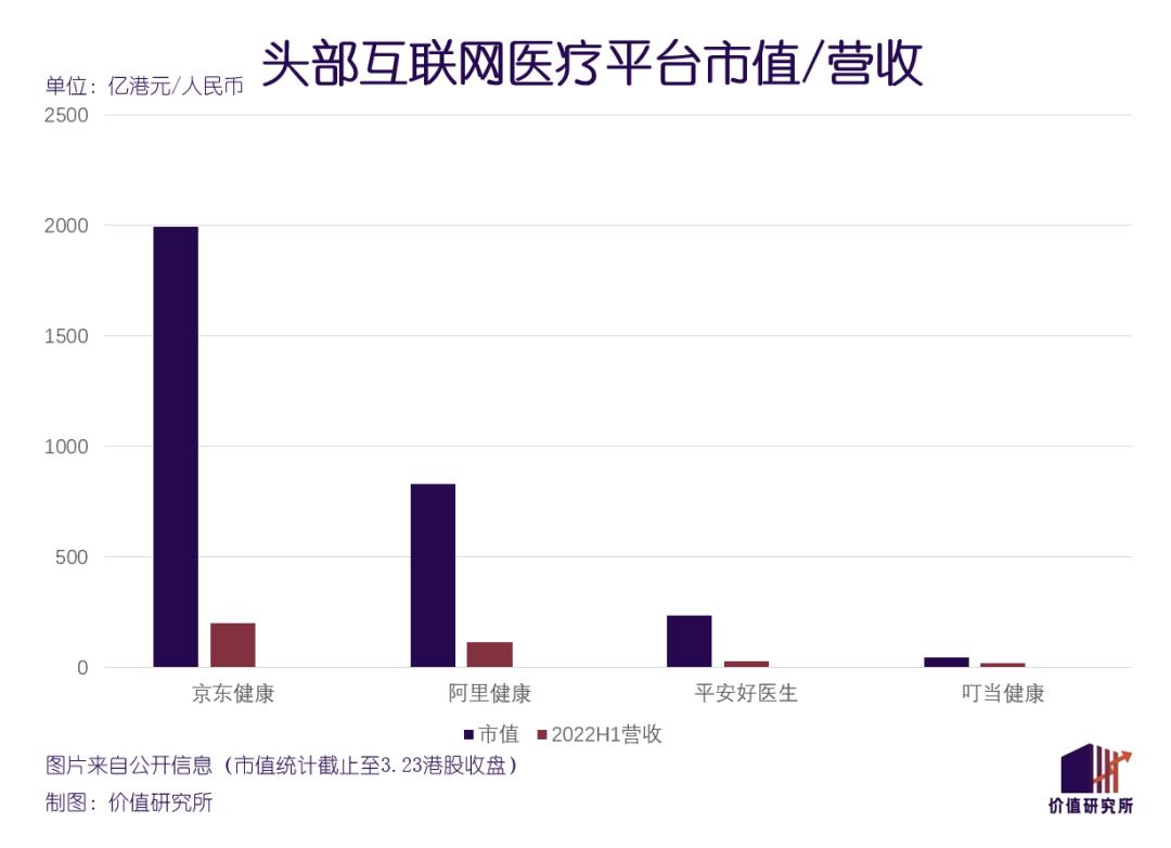 在营收和利润层面,这种分化同样明显。以截止至2022年上半年的财报为对比,京东健康、阿里健康、平安好医生、叮当健康营收分别为202.25亿、115.01亿、28.28亿、和19.9亿元。京东健康和阿里健康优势突出,和另外两个平台的差距日渐扩大。