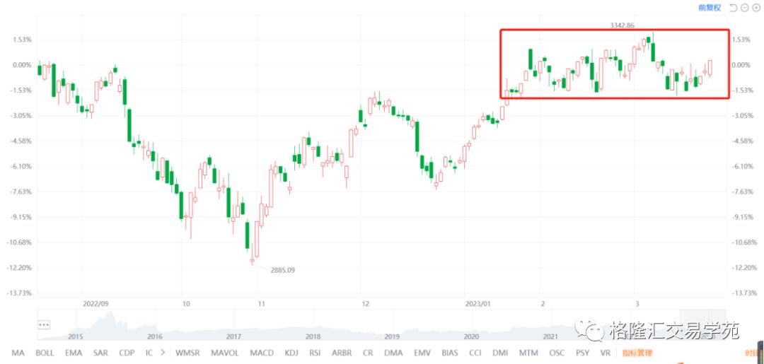 到2月中旬,反弹阶段性见顶,由于缺乏新的刺激因素,加上美股银行股暴雷等因素,回调盘整至今。从回调幅度上看,上证相对低,但港股和创业板就惨多了,特别是创业板,都快回到去年10月底的低位了。