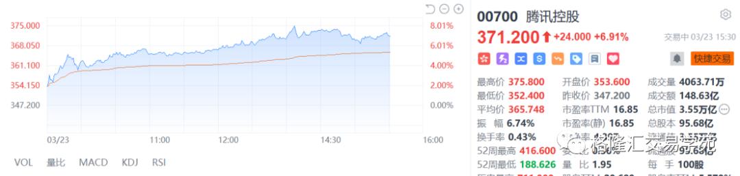 其次,港股有利好,这个利好就是腾讯。昨天盘后腾讯发财报,去年第四季度经调整后净利润恢复两位数增长,并且连续两个实现净利润增速回正,算是结束了之前连续是个季度的净利润负增长,刺激股价大涨,作为港股的定海神针,腾讯大涨,顺便带动科技股板块以及恒生科技指数带飞。而A股的科技股板块也受到提振,特别是本身就受到市场市场追捧的半导体、数字经济概念。