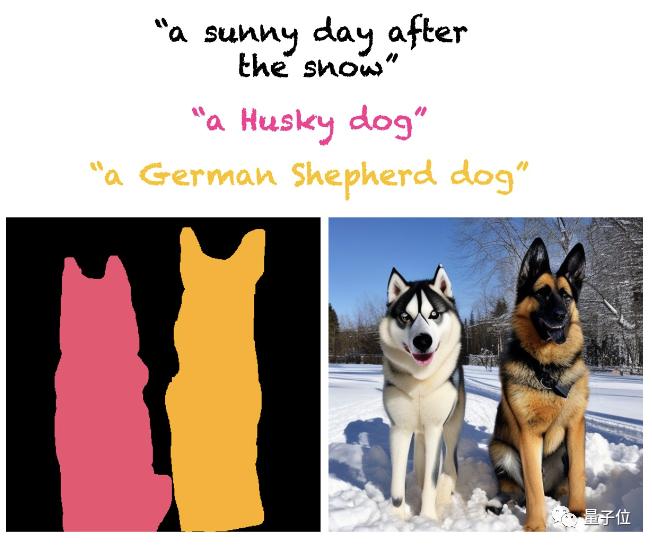 这边哈士奇,那边牧羊犬,背景在下雪天。