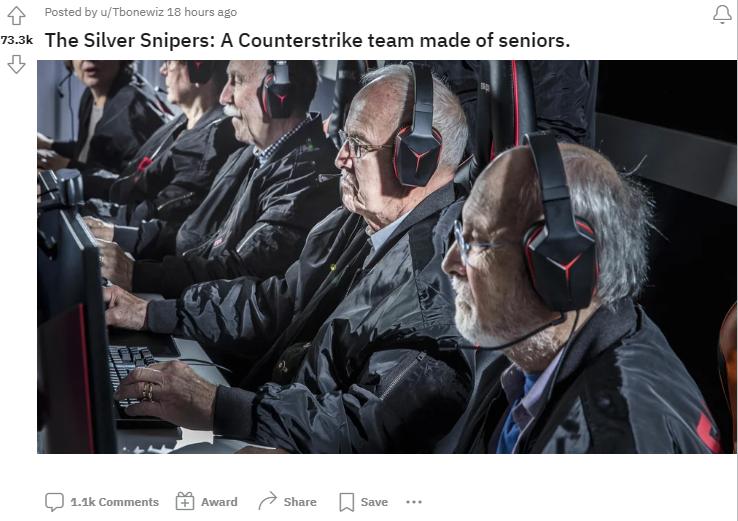 在今天CS2公开之后,Reddit游戏区最热门的帖子也与之相关,但其内容并非是游戏的新特性,而是一支全由老年成员组成的瑞典CS战队,“银发狙击手”(Silver Sniper)。在这支2017年于斯德哥尔摩崭露头角的队伍中,选手的年龄从60岁到80岁不等。