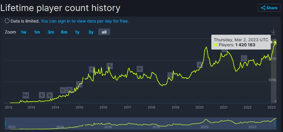 依据SteamDB的数据,CS:GO的同时在线玩家人数在3月初突破了140万人,创下了新纪录