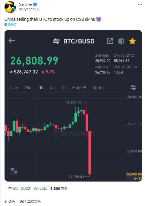 就连海外玩家都对中国玩家的这种饰品狂热有所耳闻——昨夜恰逢虚拟币市场滑坡,有人戏称这是因为“中国人把他们的虚拟币抛了去买CS饰品了”。