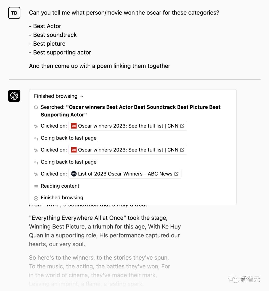 比如你可以问ChatGPT:「今年奥斯卡获奖电影的票房和最近上映的电影相比,谁高谁低?」