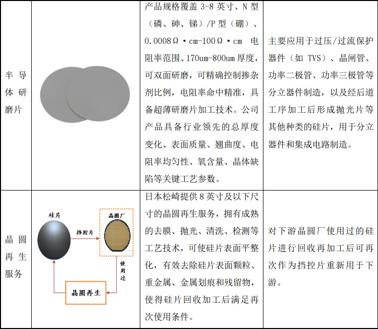 公司拥有完整的半导体硅片制备工艺和3-8尺寸的硅片生产线,可实现从晶体生长、切片、研磨、抛光的全链条生产。目前,公司已经给多家公司供货,包括东芝、富士电机、瑞萨电子、南京国盛、普兴电子、晶睿电子、三菱电机、罗姆半导体、华润微、美国力特、捷捷微电、扬杰科技、台湾半导体、苏州固锝等全球知名半导体公司。