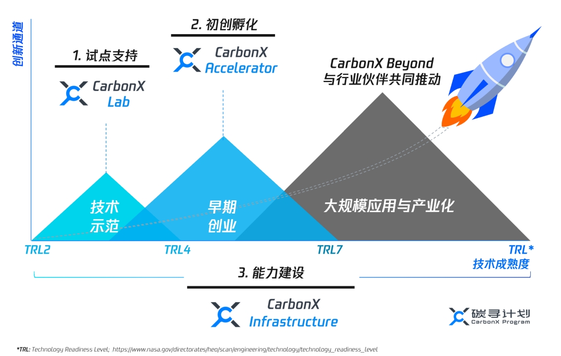 “碳寻计划”针对不同阶段与类别的项目开放三大创新通道,分别为:试点支持——支持前沿技术的首个工业场景示范项目;初创孵化——加速有正向经济性的早期创业项目的商业孵化;能力建设——支持构建行业基础能力、数据和标准(如数据库、固碳效益监测工具、数字化能力等)。随着启动会的举行,“碳寻计划”的在线申报也同步开放,第一季申报截止时间为6月底。