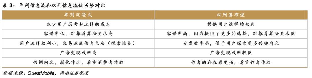 单、双列不同的设计背后,体现的不仅仅是产品理念的差异,还取决于内容生态,会直接影响到内容的分发机制,进而影响变现端的表现。
