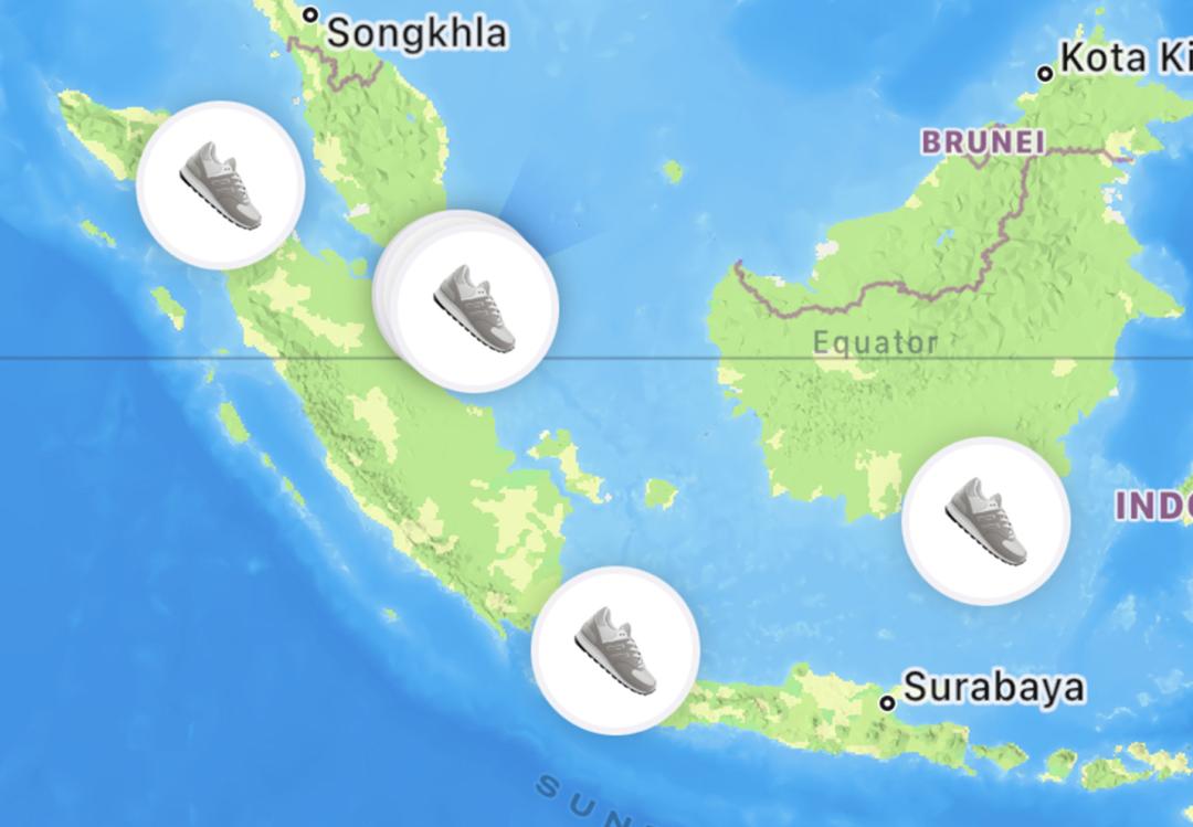 不过3个月后,当记者们再打开“查找”时,发现鞋子并没有变成跑道,而是从新加坡一路南下,分散到了印度尼西亚各地。有一双甚至转辗各个城市,在一个月时间内跨越了2000公里。