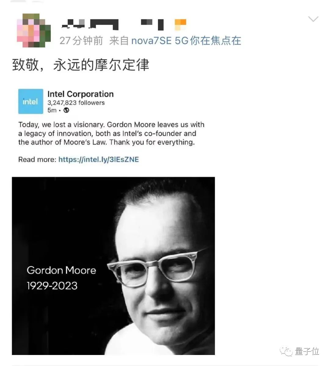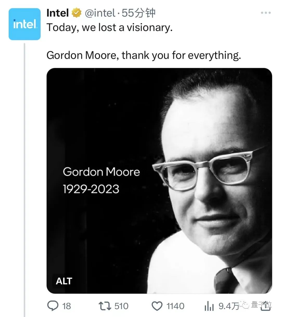 不幸的消息传来后,英特尔官方发推,悼念这位见识卓越者(visionary):