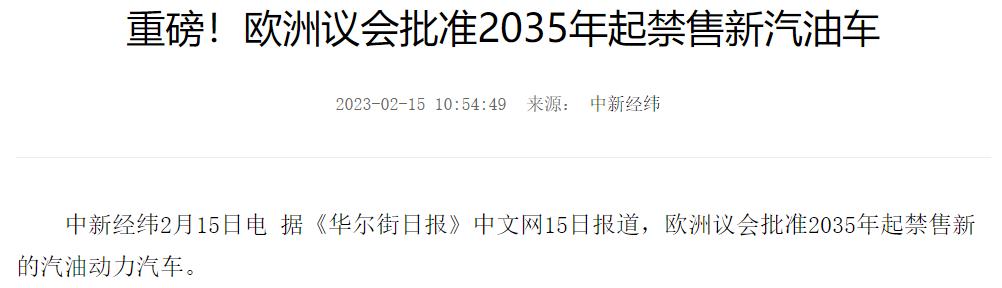 前一段时间,欧洲通过了在 2035 年停售燃油车的提案。虽然遭到了德国反对,但也已经表明了国际大环境对于油车的退出历史舞台的坚定态度。
